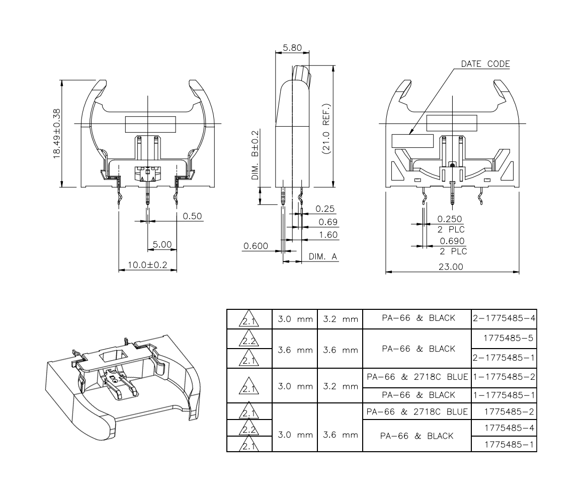 2-1775485-1 TE Connectivity Podstawka baterii