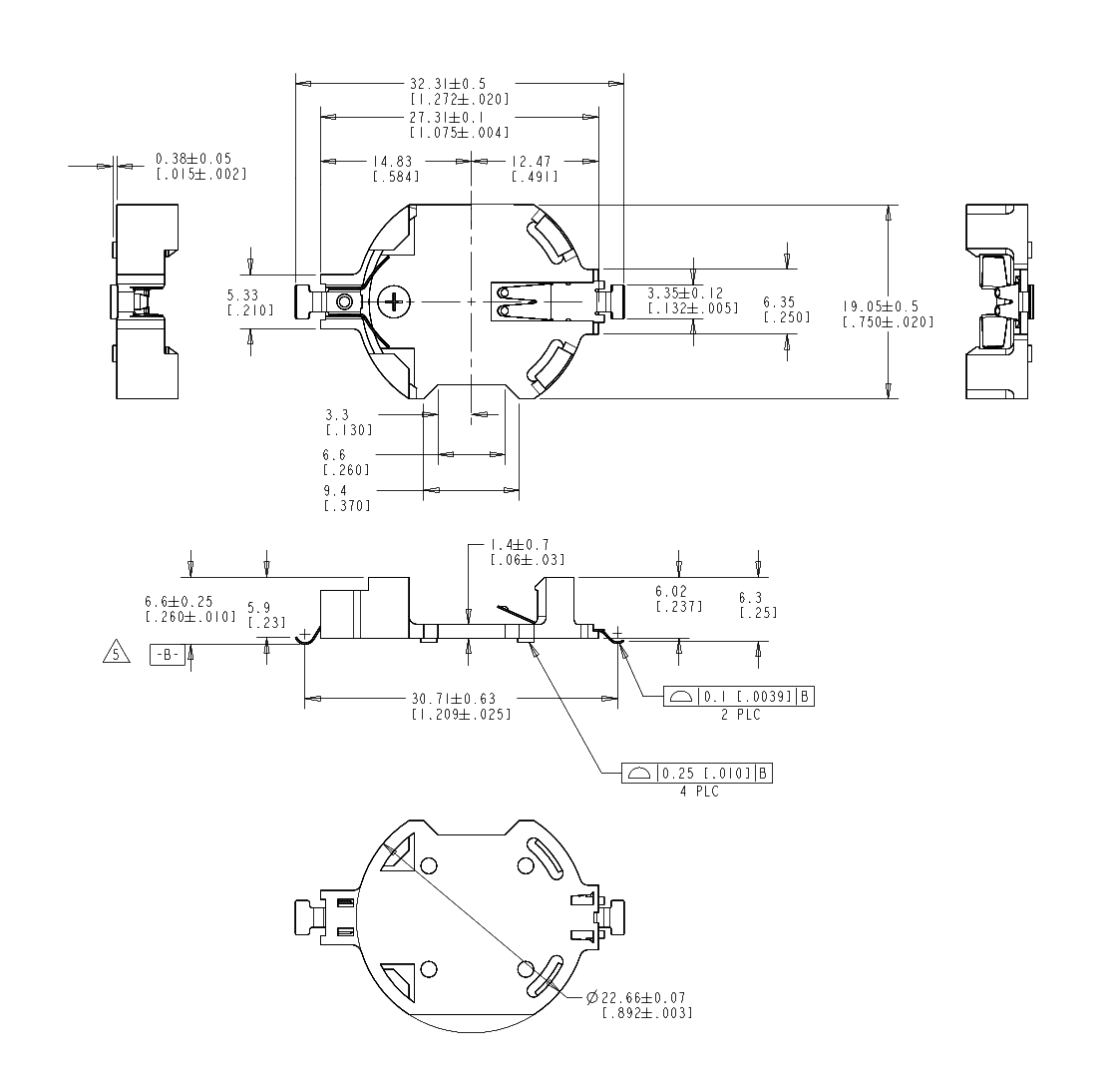 Uchwyt baterii; CR2477; montaż: PCB; poziomy; ilość baterii: 1; średnica baterii: 24mm; długość: 22,61mm; szerokość: 26,88mm; wysokość: 11,42mm
