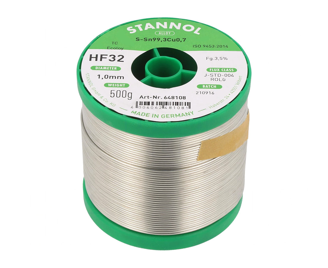 | Stannol | 500g | Sn99,3Cu0,7 | 1mm | 227°C | ||||||||||||||