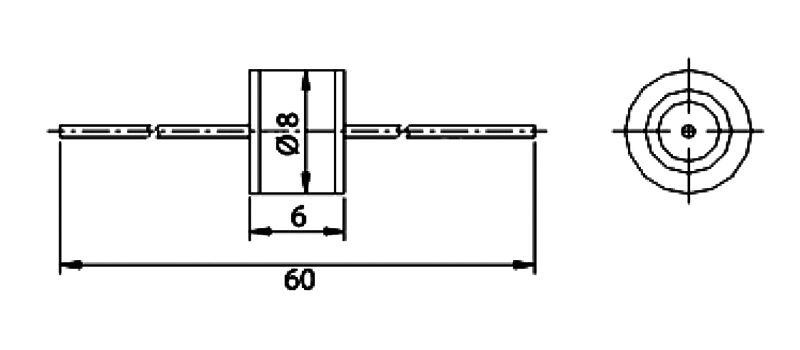 Gasentladungsröhre; 90V; Abmessungen: 8x6mm; 2 Elektroden; 90V; 10GOhm; 2 Leitungen: axial; THT