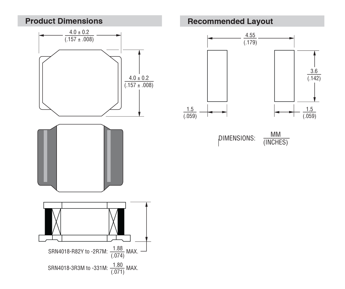 Bourns Hersteller-Teilenummer: SRN4018-3R3M Präzisionsgehäuse: Rys.SRN4018 |