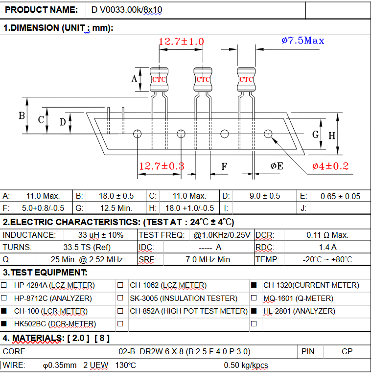 Feryster | Vertikal | THT | 33mH | 0,6A | 1,1 Ohm | ||||||||||||||