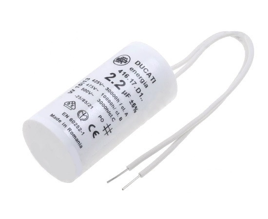 Motoranlaufkondensator 2,75uF/450VAC +/-10% 37x28x18mm Betriebstemperatur: -25 °C bis +70 °C; Drähte: 2,2-2,4 mm Durchmesser