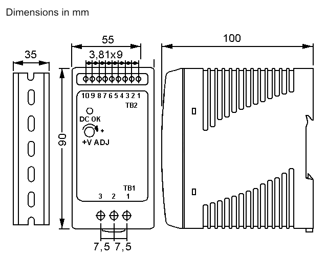 22.5x90x100mm | 15W | 5V | 3A | Mean Well | ||||||||||||