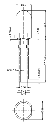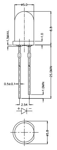 LED 5 mm wasserdurchlässig, rot, 18000 mcd Wellenlänge: 625 nm; Diodenstrom: 20 mA; Abstrahlwinkel: 12°