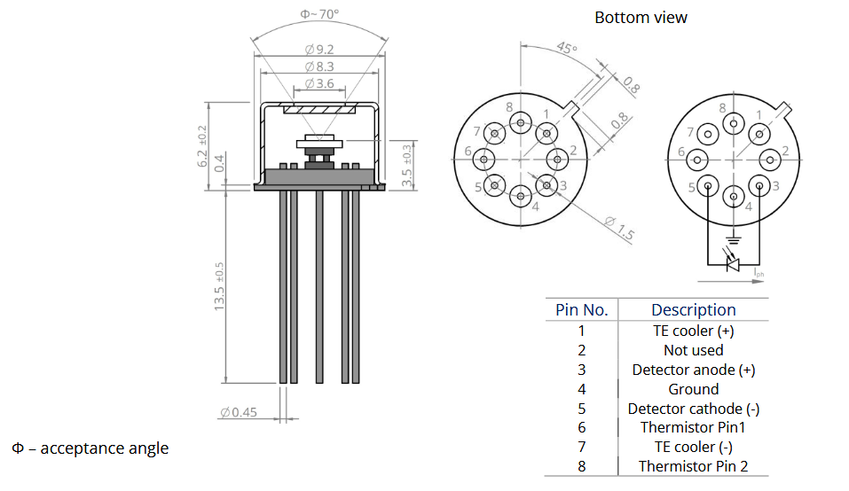 Hersteller: VIGO PHOTONICS; THT; Gehäuse: TO8 Wellenlänge: 4400 nm;