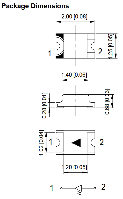 LED SMD 0201 rot; Leuchtkraft: 40-75mcd; Diodenstrom: 5mA Wellenlänge: 620-630nm; Betrachtungswinkel: 120°; Betriebsspannung: 1,6-2,4V