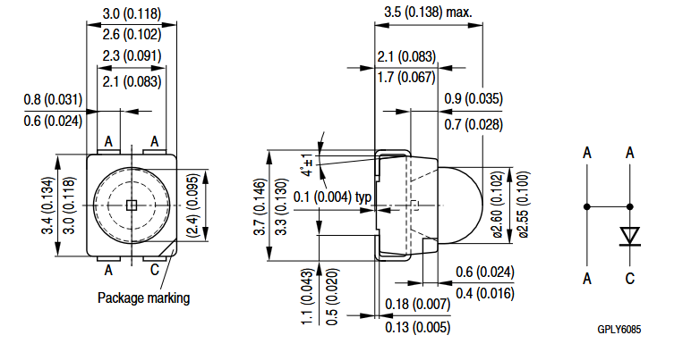 Blau | 100mcd | 470nm | 20mA | 120° | -40°C ~ 85°C | ||||||||||||||||||||