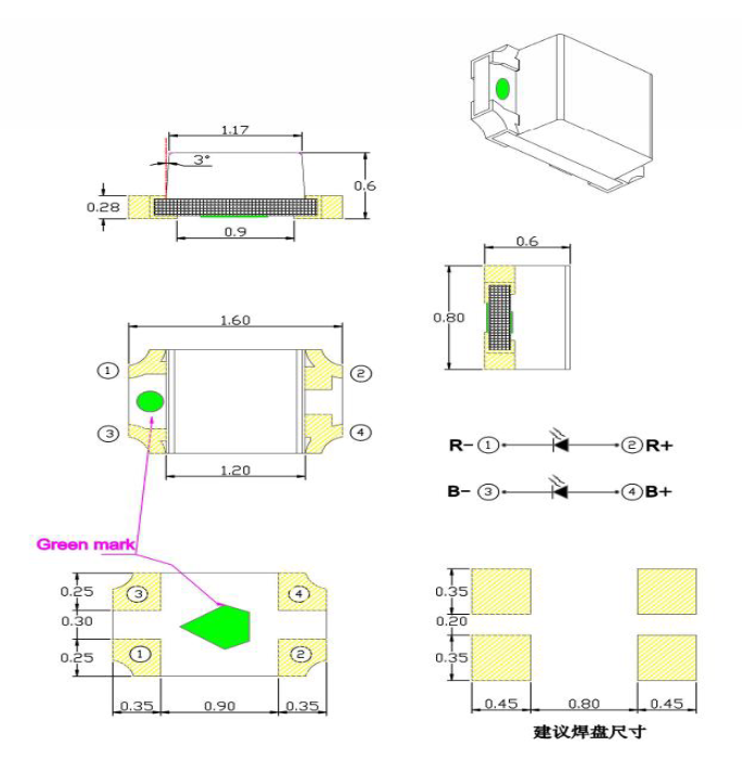 HONGLITRONIC. Hersteller-Teilenummer: PST-1608S35FC RoHS Präzisionsgehäuse: Rys.OLS.03w |