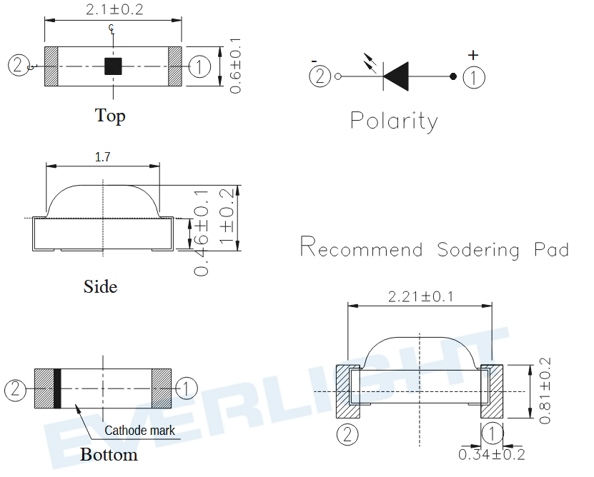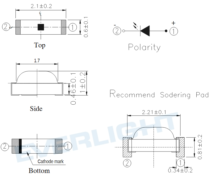 | SMD | Grün | 20mcd ~ 50mcd | 570nm ~ 574nm | 30mA | 120° | 2,1V ~ 2,5V | -40°C ~ 85°C | ||||||||||||||||