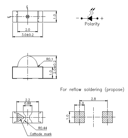 LED SMD 3020; Rot; 100-300 mcd; 620-630 nm; 25mA; 120°; 1,8 ~ 2,6 V; -25°C~85°C