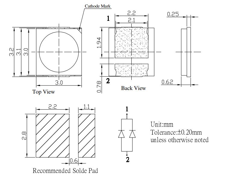 | SMD | Warmweiß | 34~38lm | 65mA | 120° | 3500K | -40°C ~ 85°C | |||||||||||||||||