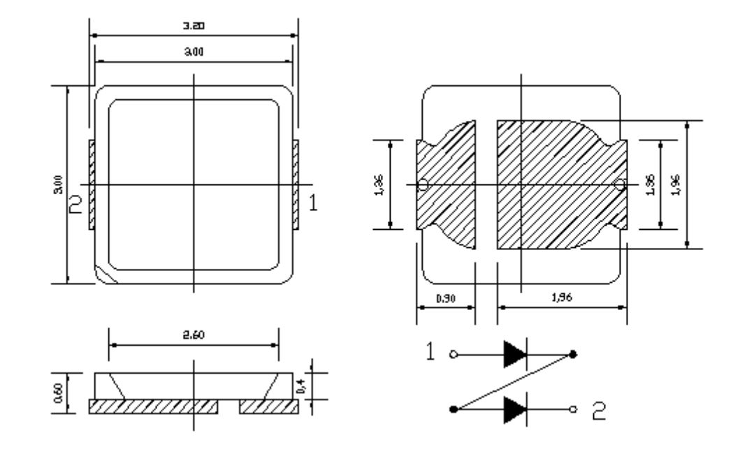 LED 3030; Blau; 2500-3000 mcd; 450-460 nm; 150mA; 120°; 6,0 ~ 7,0 V; -20°C~80°C