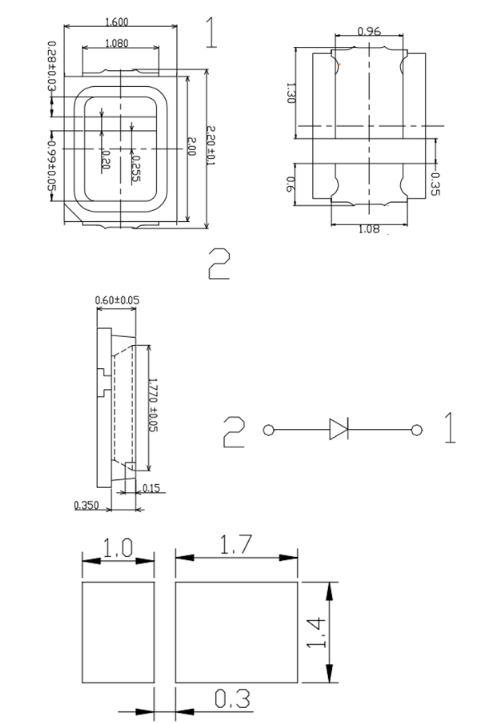 LED SMD 2016; Blau; 500-750 mcd; 460 nm; 60mA; 120°; 3,2 V; wassertransparent