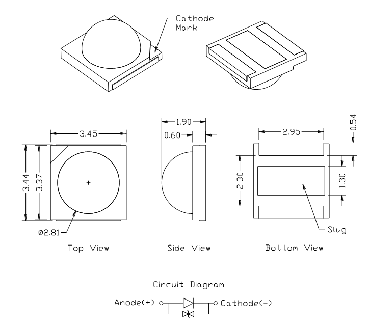 ProLight Opto | SMD | 2,81mm | UV | 390nm ~ 410nm | 130° | 350mA | 3,0W | 2,85V ~ 3,85V | -40°C ~ 90°C | |||||||||||||||