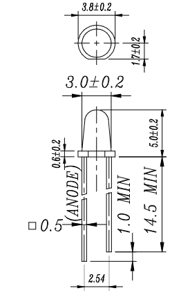 | 100~250mcd | 460~475nm | 3,2~3,6V | Blau | 140° | 30mA | -25°C ~ 125°C | 3mm | THT | ||||||||||||||||||||||||||||||||