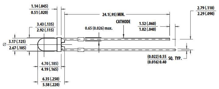 KingBright | LED | THT | Rot | 400mcd ~ 80mcd | 60° | 22mA | 630nm ~ 645nm | Diffus | 310mW | 3,5V ~ 14V | 3mm | -40°C ~ 70°C | ||||||||||||||||||