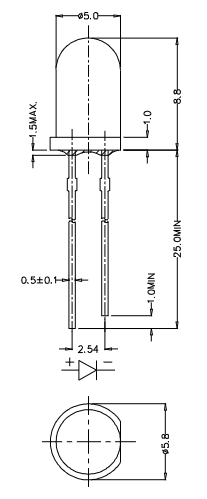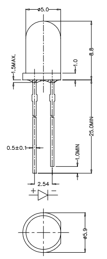 | Rot | 15000~22500mcd | 30mA | 10° | 2,0V | 625nm | THT | 5mm | ||||||||||||||||