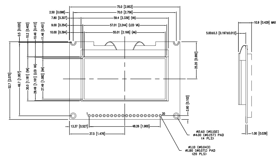 75x52.7mm 57.01x29.90 mm 128x64 3,3V UART -40°C ~ 70°C Weiß