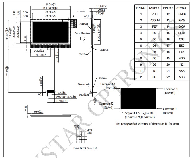 | 26.7x19.26x1.26mm | 21.74x10.86mm | 128x64 | 2,8V-3,3V | -40°C ~ 80°C | Weiß | ||||||||||||||||||