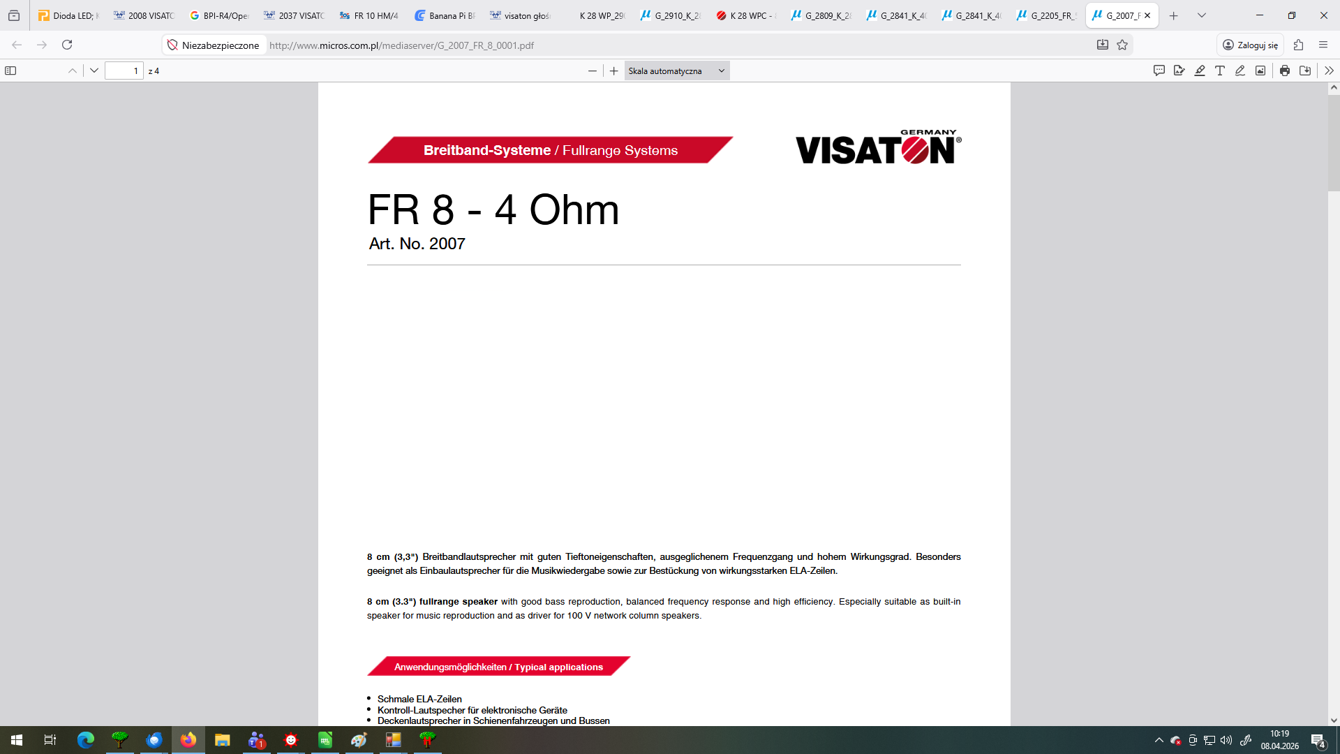 Abmessungen: 60,5 x 60,5 x 37 mm; Nennleistung: 10 W; Nennimpedanz: 4 Ohm; Lautstärke: 86 dB; Resonanzfrequenz: 150 Hz. Betriebstemperatur: -40 °C bis 85 °C; Schutzart: IP65