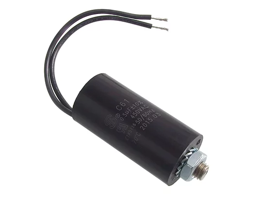 Motoranlaufkondensator 1,5uF/450VAC +/-10% 26x55mm Betriebstemperatur: -25 °C bis +70 °C; Befestigung: M8-Schraube, Drähte 2,8 mm Durchmesser