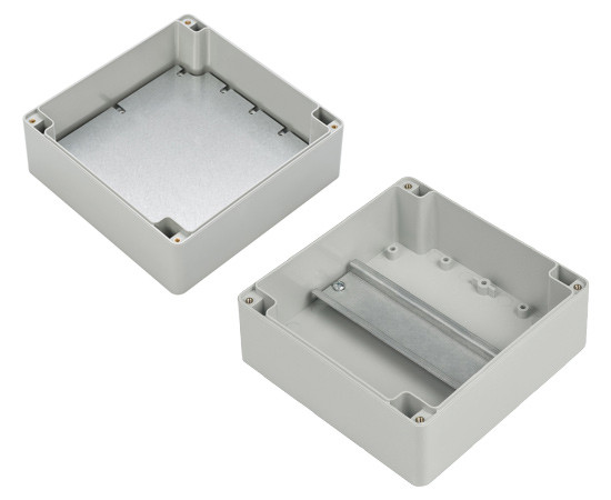 Hermetisches Gehäuse aus Polycarbonat ZP210.140.60, hellgrau Abmessungen: 52,9 x 209,7 x 139,8 mm, mit Messingbuchsen