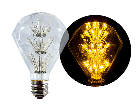 Żarówka LED 3W, biała ciepła (2300K), 90 - 265V Zasilanie 90 -265V, wymiary: E27, 95 x135mm, diamond shape