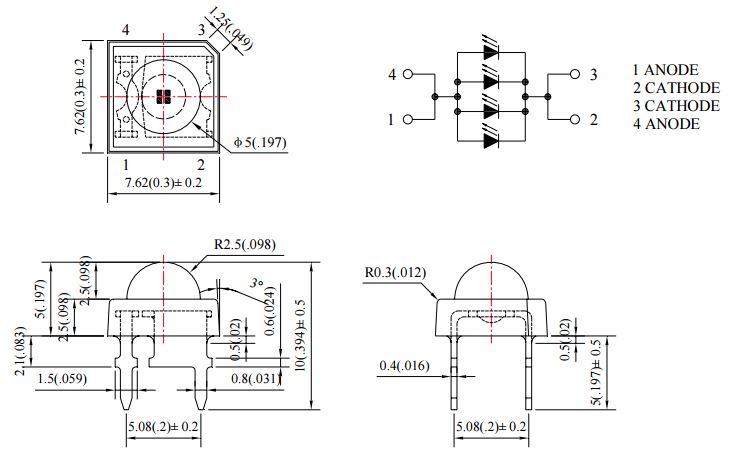LED; THT; SuperFlux; 5mm; zielony; 3000mcd; 515nm; 80mA; 120°; 3,4V; 4 piny; 4 chipy; wodnoprzeźroczysta
