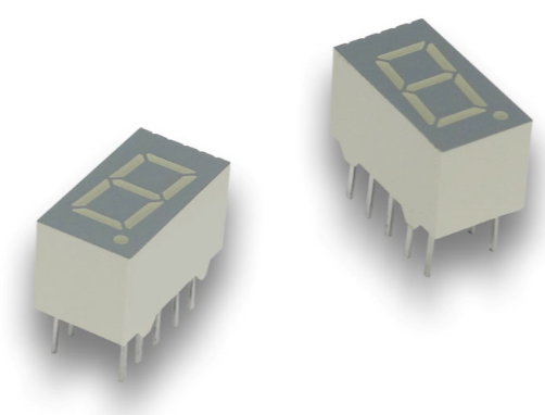 1-stelliges THT-LED-Display; Farbe der Hintergrundbeleuchtung: grün; Produzent: Kingbright; Helligkeit: 0,8-1,9 mcd gemeinsame Anode; Pinbelegungsabstand: 2,54 mm; Wellenlänge: 568 nm