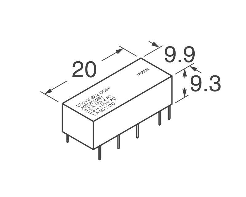 DPDT; 5V DC; 2A; 200 mW; 20 x 9,9 x 9,9 mm Leiterplatte