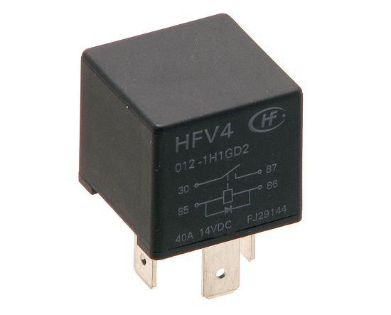 40A; 12V; SPST-NO ; Spulenleistung 1,6W; 26,2 x 23,7 x 26,2 mm Qualitätskontrolle; mit Schutzdiode zwischen Stecker 85 und 86