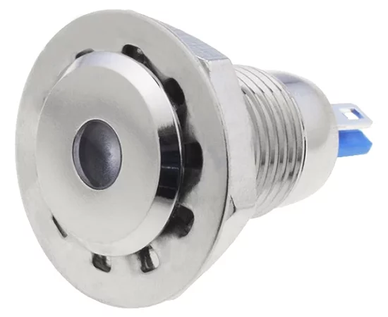 12mm, flach; Gehäusematerial: Messing; Gehäusebeschichtung: Nickel; zum Löten; weiße Hintergrundbeleuchtung IP67; 12 V Gleichstrom; Betriebstemperatur: -20-55 °C