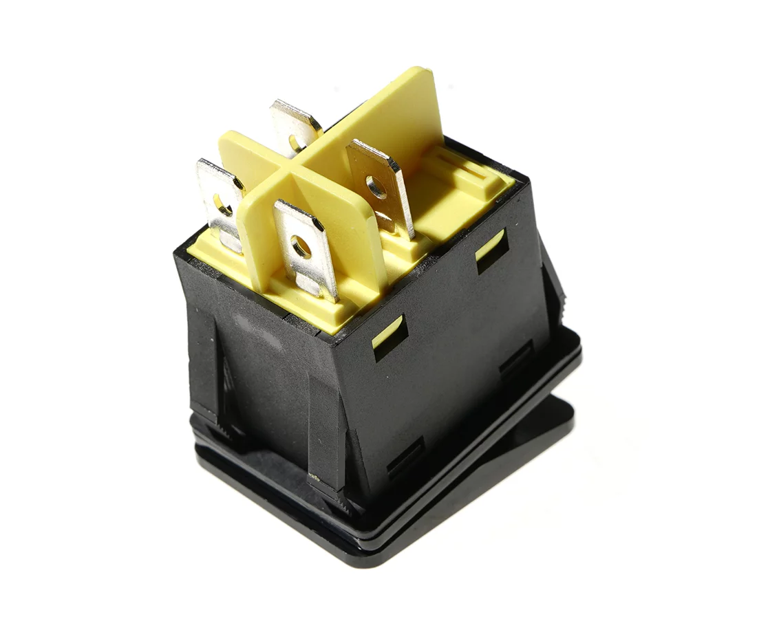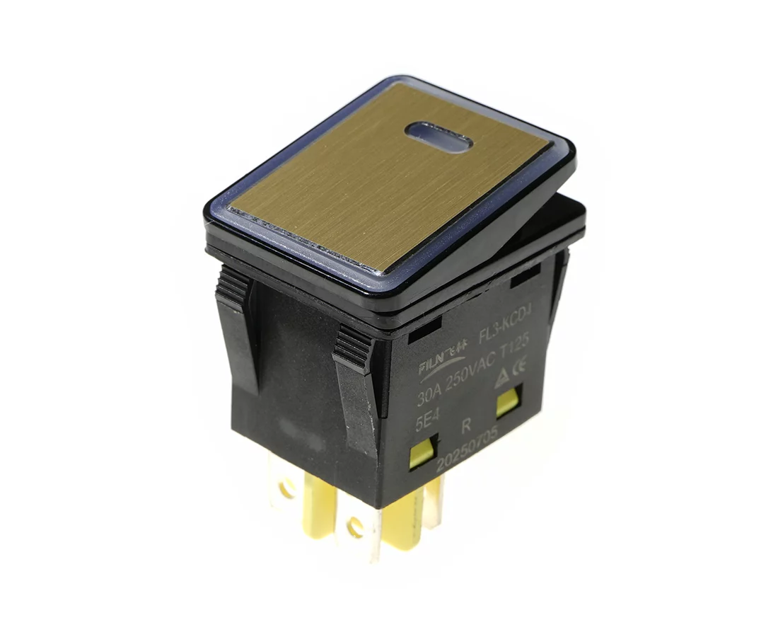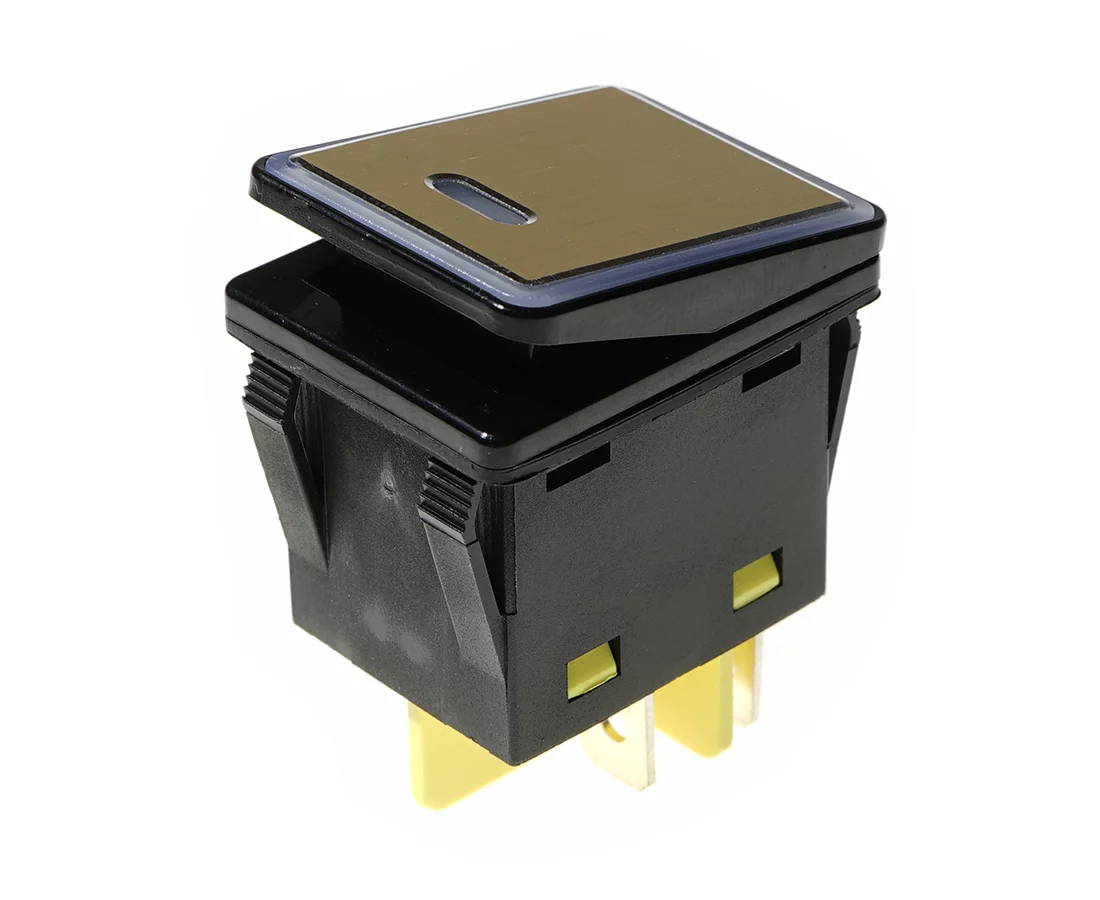 bistabil; EIN-AUS; rote Hintergrundbeleuchtung 230V; Schlüssel golden; Körper: Schwarz; DPST; 4P; 15A 250VAC; Lebensdauer: 20.000 Zyklen; Betriebstemperatur: -40°C+125°C