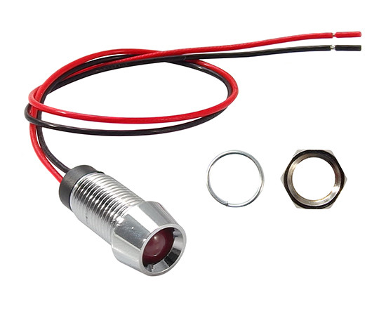 8mm; konkav; verchromt; 20 cm lange Kabel; 12V LED-Hintergrundbeleuchtung; Rot; IP65; 15mA; Lebensdauer: 50.000 Stunden