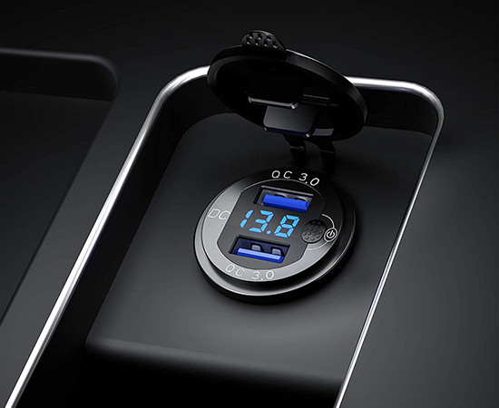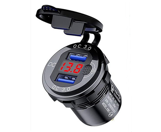 LED-Spannungsmesser mit ON OFF-Schalter; zwei USB QC 3.0-Anschlüsse Spannung: 12-24V; ohne Unterspannungsalarm