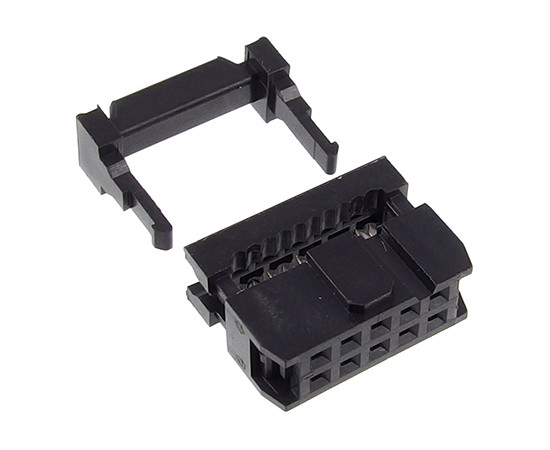IDC-Buchse r.2,54mm für 1,27mm AWG-Kabel, schwarz, mit Clip, selektiv vergoldete Kontakte entsprechend IDC-10, IDC10, AWP-10, IDC10-LF