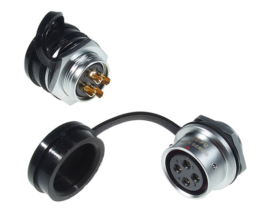 Buchsenstecker, rund, 4-polig geschraubt, für Panelmontage, Innengewinde, IP67, 500V, 5A, mate SF2010