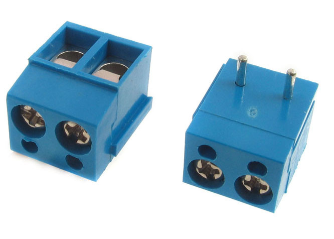 2 polig, Raster 5,00 mm, Höhe 9 mm, blaue Farbe, 300 V, 10 A, 22-14 AWG, abgewinkelt, Rundloch, Kreuzschraube, Stahl, verzinkt Drahtschutz: Edelstahl, Lötstift: Messing, verzinnt, Äquivalent Z DG300R-5.0/2