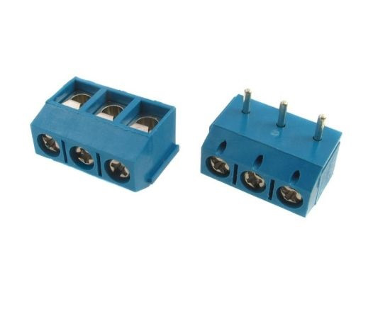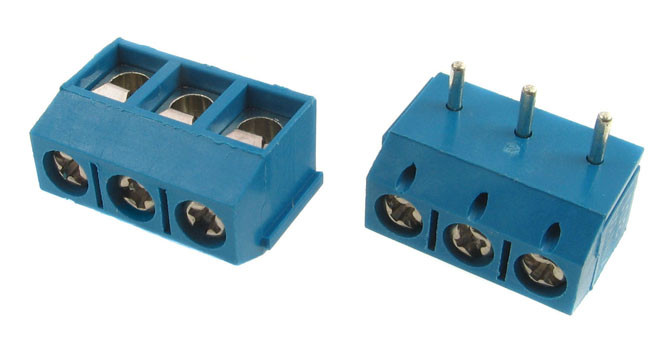 3-polig, Rastermaß 5,00 mm, Höhe 7,6 mm, Farbe: blau, 300 V, 15 A, 22-14 AWG, abgewinkelt, Rundloch, Kreuzschraube, Stahl, verzinkt Drahtschutz: Edelstahl, Stift: Messing, verzinnt, Äquivalent: TBO5003R, Z DG301R-5.0/3
