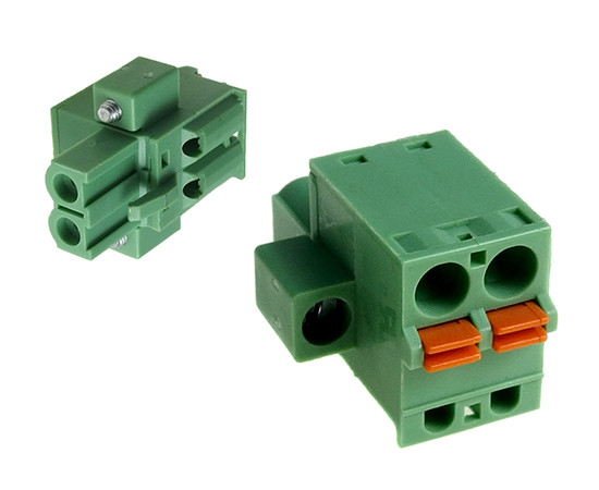 2 Pole, Rastermaß 5,08 mm, Höhe 25,6 mm, grüne Farbe, 320 V (VDE), 20 A, PA66, UL94V-0
