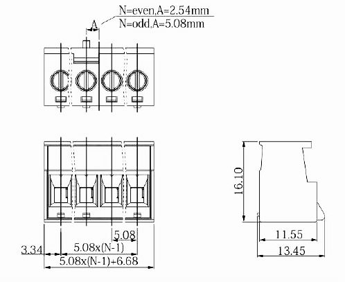 3 Pole, Rastermaß 5,08 mm, Höhe 16,1 mm, grüne Farbe 300 V, 15 A, PA66, UL94V-0