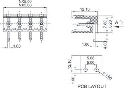 12 Pole, Rastermaß 5,0 mm, Höhe 8,2 mm, grüne Farbe 320V (VDE), 20A, abgewinkelt, passend zu 2EDGK-5.0, PA66, UL94V-0 äqiv. Z TLPH200r-12P