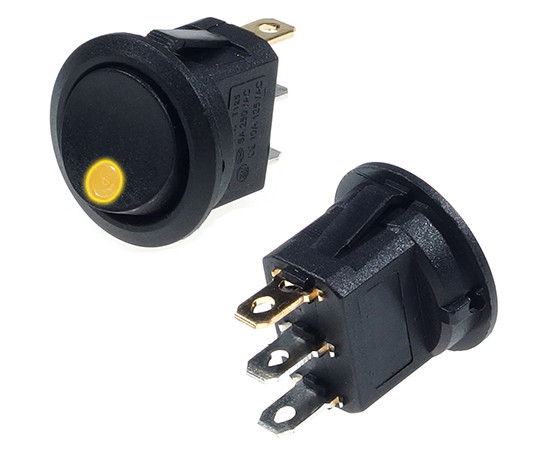 bistabil; EIN-AUS; gelbe Hintergrundbeleuchtung; Körper: Schwarz; SPST; 3P; 10A 125V; 6A 250V; Lebensdauer: 10000 Zyklen; Betriebstemperatur: -25°C+85°C