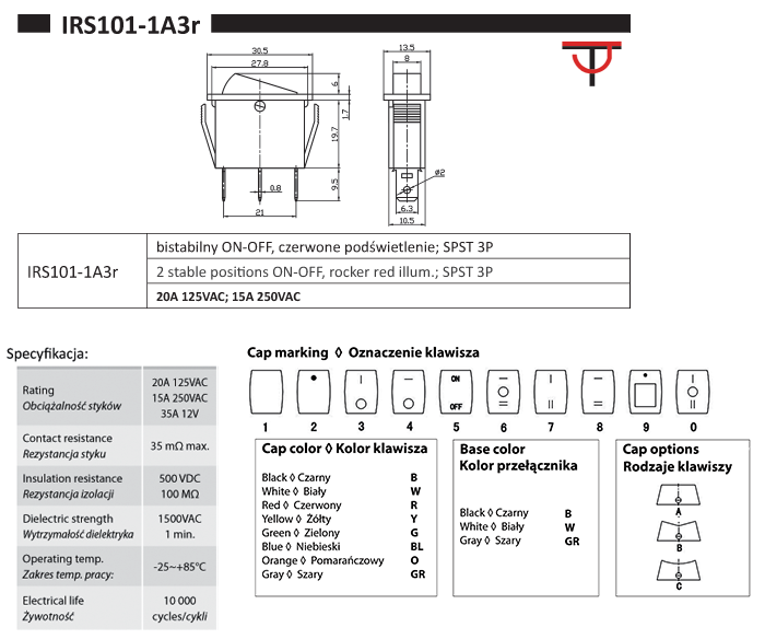 SWI Hersteller-Teilenummer: IRS-101-1C3/R RoHS Präzisionsgehäuse: Rys.IRS101-1C3r |