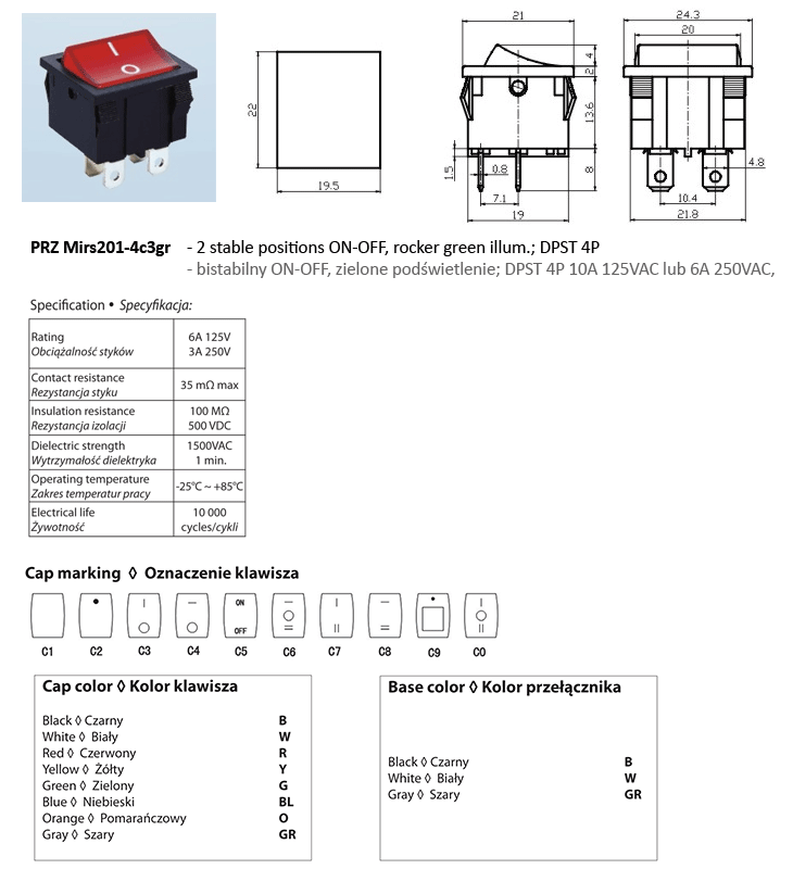 FILN Hersteller-Teilenummer: KCD4-201N-4 Green 230V RoHS Präzisionsgehäuse: Rys.MIRS4201N-4g |