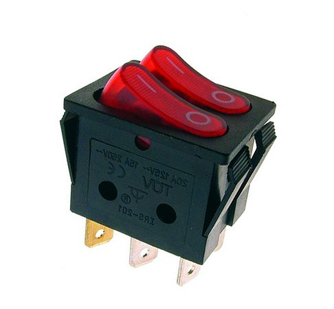 bistabil; EIN-EIN; rote Hintergrundbeleuchtung; Körper: Schwarz; DPDT; 6P; 20A 125V; 16A 250V; Lebensdauer: 10000 Zyklen; Betriebstemperatur: -25°C+85°C
