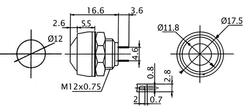 monostabil; Metallgehäuse; EIN-(AUS); normalerweise geschlossen = normalerweise geschlossen; Farbe rot; runden; 3A 125VAC 1A 250VAC; Lebensdauer: 50.000 Zyklen; Äquivalent: PS10C2RD