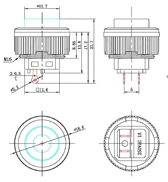bistabil; EIN-AUS; Farbe blau; runden; 3A 125VAC 1A 250VAC; Lebensdauer: 50.000 Zyklen