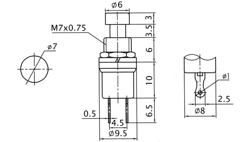 | OFF-(ON) | Schwarz | Runden | 3A 125VAC 1A 250VAC | N/A | Keiner | Keiner | -25°C ~ 85°C | |||